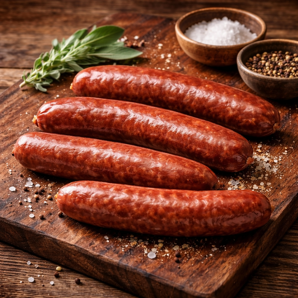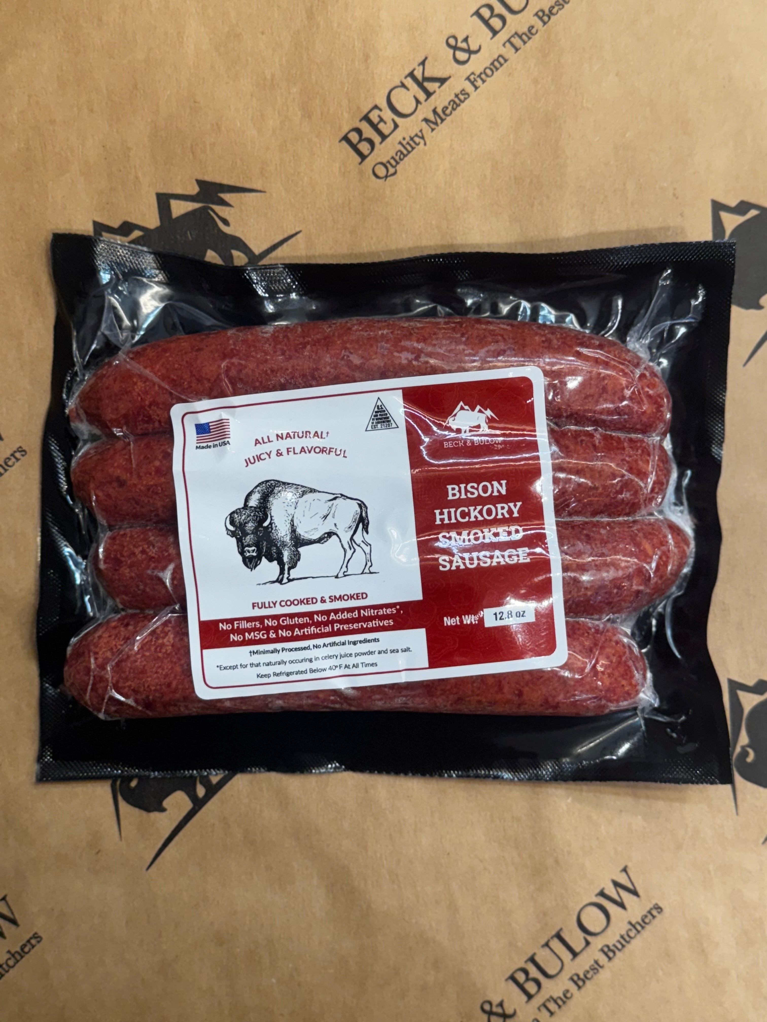 Ingredients: Bison, water, seasonings (sea salt, natural spices, cane sugar, mustard, paprika), celery juice powder, natural pork casing. NO Gluten - NO Nitrates - NO MSG - NO Preservatives.