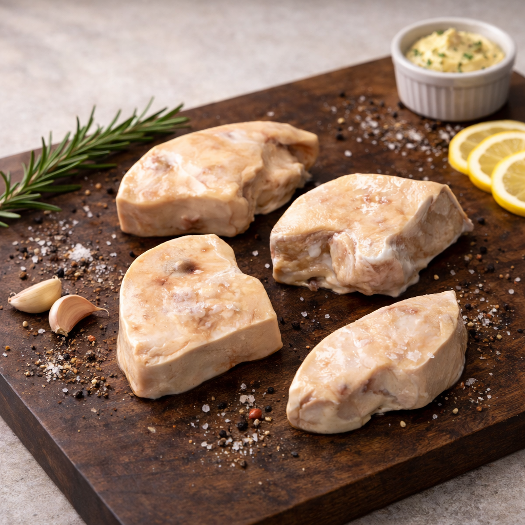 Foie gras is prized for its luxurious mouthfeel and versatility in both classic and modern dishes. It melts easily, spreads smoothly, and adds depth to any preparation.