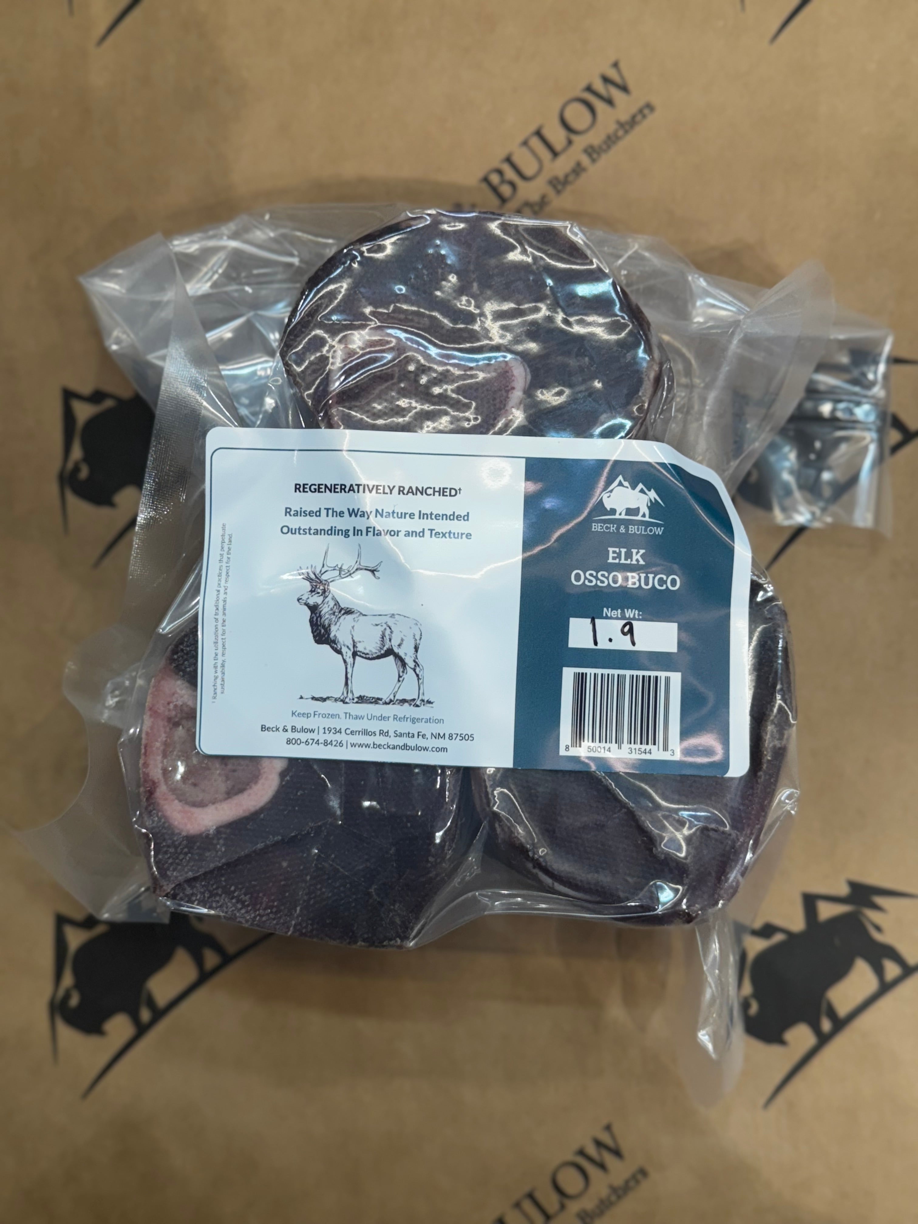 Physical Description: Indulge in the exceptional taste and tenderness of Beck & Bulow's 100% Free Range Elk Osso Buco. Each package contains approximately 1.5 lbs of meticulously sourced elk shanks, expertly trimmed and ready to be transformed into a gourmet masterpiece. The beautiful, bone-in cuts showcase the rich, deep red color that is characteristic of our high-quality grass-fed elk.