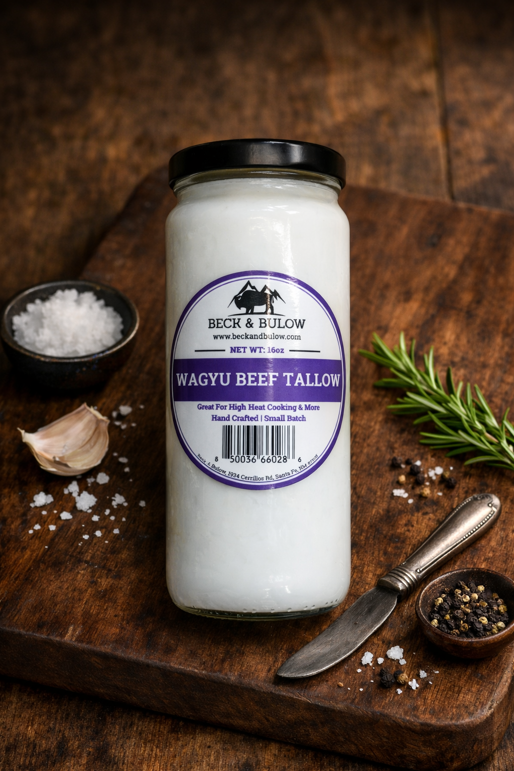 Culinary Uses and Health Benefits: Wagyu beef tallow is carefully rendered over low heat, separating the pure fat from muscle and connective tissue. This versatile fat has a high smoke point, making it ideal for cooking at high temperatures. It imparts a rich and delicious flavor to dishes and can be used as a substitute for butter or oil in any recipe. Our employees at Beck & Bulow even enjoy adding it to their coffee for a bulletproof-style beverage.