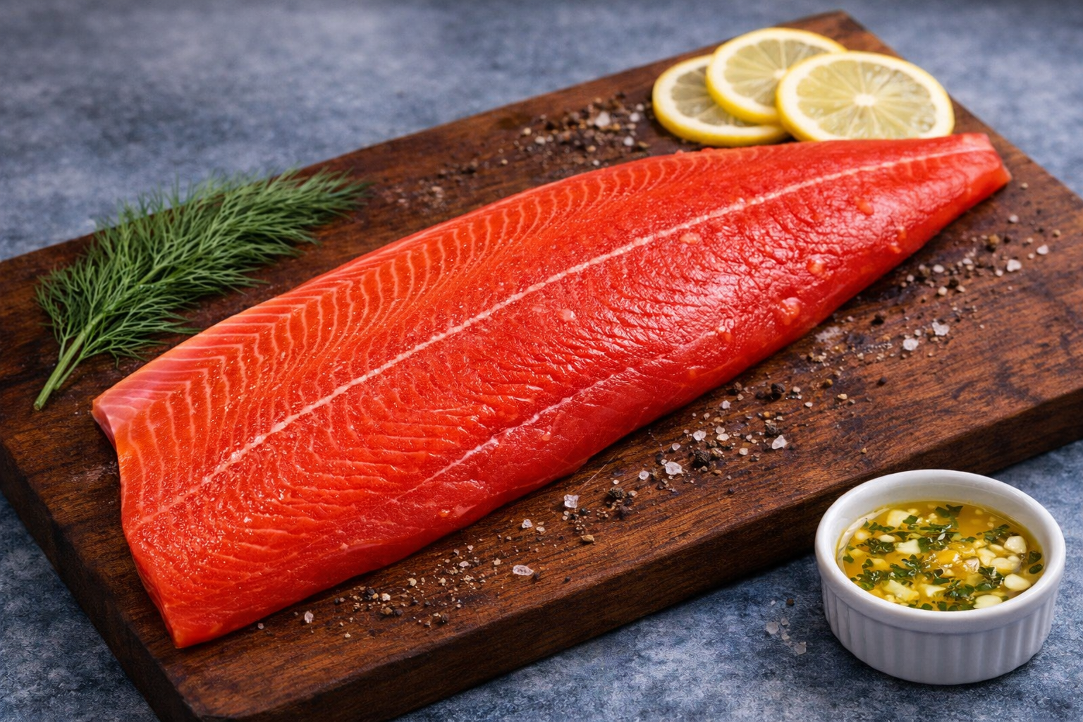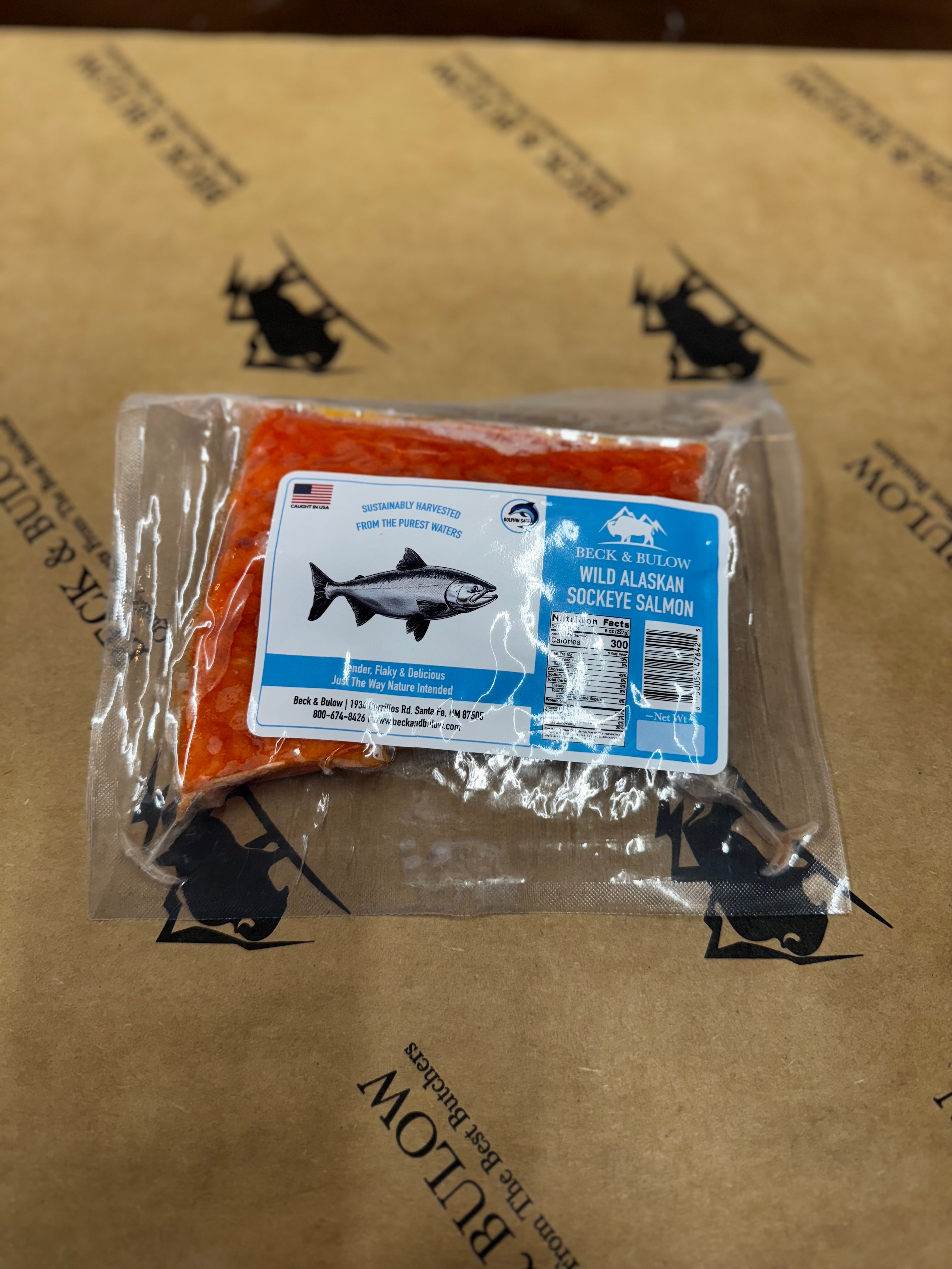 Experience the rich flavor, vibrant color, and exceptional quality of our wild caught Alaskan sockeye salmon. Available in 8 oz fillets or whole sides—add to cart today and enjoy sustainably sourced, premium seafood delivered to your door.